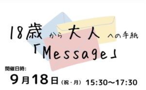 18歳から大人への手紙『Message』in 東京 9月18日 東京銀座(15:30〜17:30 ) 18歳から大人への手紙(Message) 14歳の時に沖縄から北海道まで歩いたゆずがいつの間には18歳。 あの時、何を […]