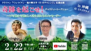 会場&YouTube配信! 髙原和也&杉浦貴之&てんつくマン・チャリティートークショー! 「奇跡を起こせ!~不可能を可能にしてきた男たちのメッセージ~」 1月26日より始まるてんつくマンのクラウドファンディング 「子ども […]