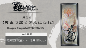 受付終了しました! お申込み、ありがとうございました。 概要 2月23日(日)13時から3月1日の間に、入札を開始します! 第二回目の入札は、Dragon Tsuyoshi×てんつくマンによる 作品名は、『天まで届くアホ […]