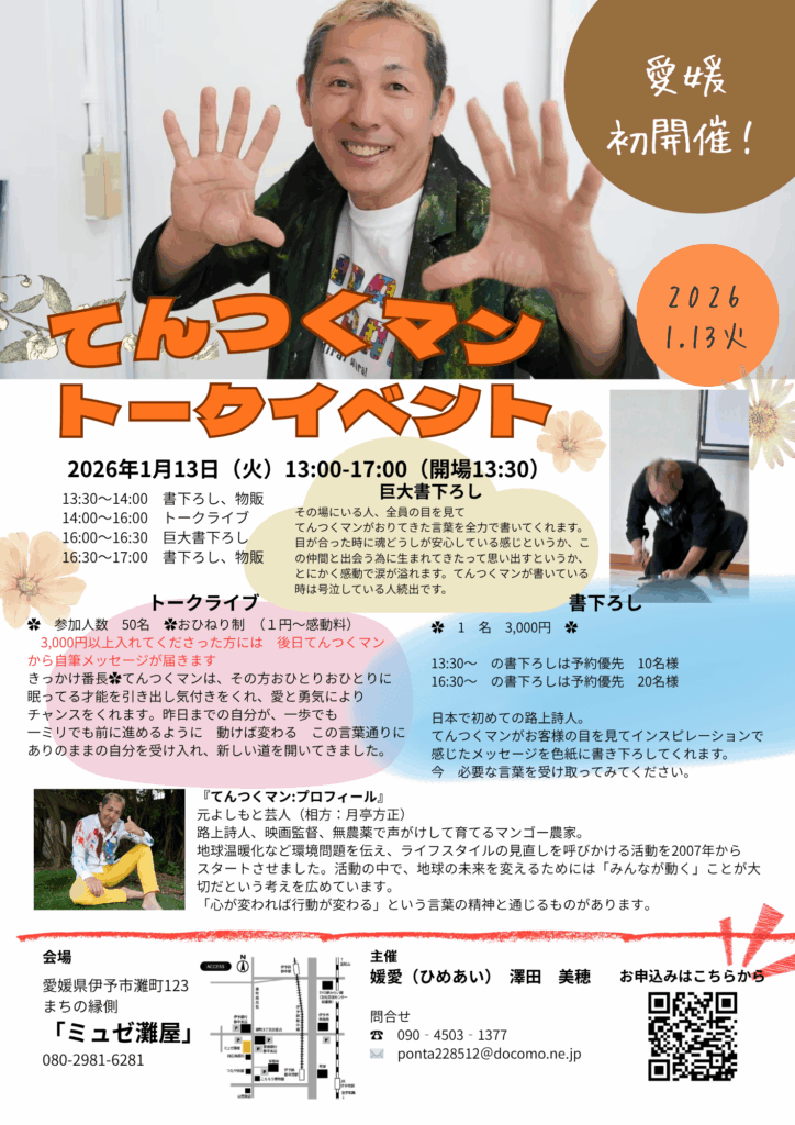 てんつくマンのイベントを主催したい方は以下から詳細をご確認ください♪